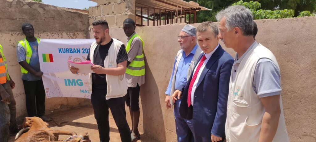 Im Rahmen der Kurban-2025-Aktivitäten wurden die Organisationen in Mali im Geiste der Transparenz und Zusammenarbeit durchgeführt. Die Schlacht- und Verteilungsbereiche der Opfergaben wurden persönlich unserem Botschafter der Republik Türkei in Mali, Herrn Efe Ceylan, gezeigt. Unser Botschafter erhielt von unseren Beobachtungsteams detaillierte Informationen über die durchgeführten Arbeiten.